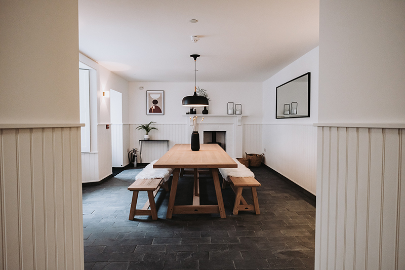 Sleeps up to 12 Adults + 2 children within 6 gorgeous en-suite rooms (sofa bed in larger suite). Huge lounge, large basement kitchen and dining room opening onto lower terrace area. FREE parking for 5 cars. An ideal base for one large family group attending one of our weddings. Located at Tunnels Beaches entrance, very close to 'The Courtyard', 'The Bath House' and 'The Woodlands'. Pick and choose which properties to book and get 6, 15 or 33 bedrooms depending on your needs and budget... Must be booked as a whole. Minimum 2 night stay. £1000 non-refundable deposit required to confirm booking. Outdoor area links through to 'The Woodlands' to provide a shared space if both properties booked.