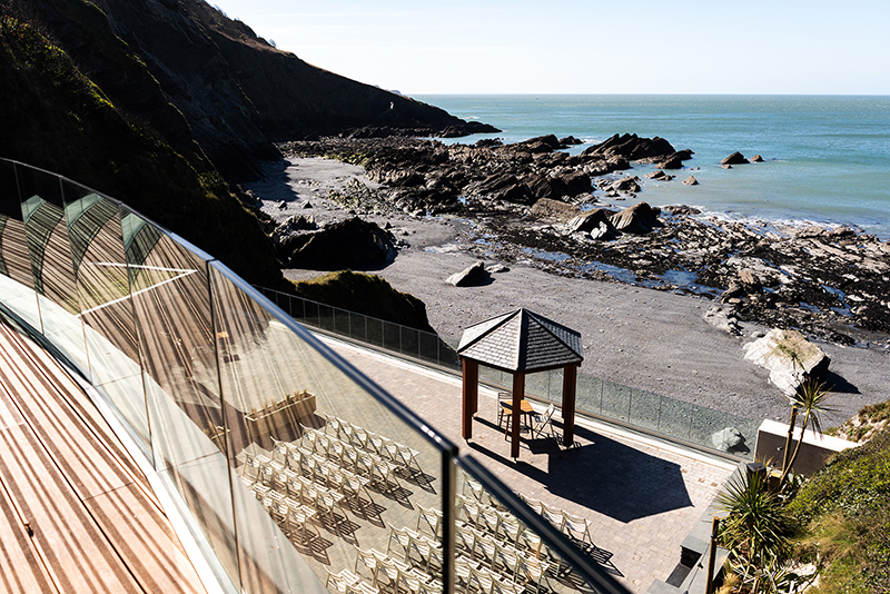 Nestled into the cliffs above its own private beach, this breathtaking bespoke wedding venue